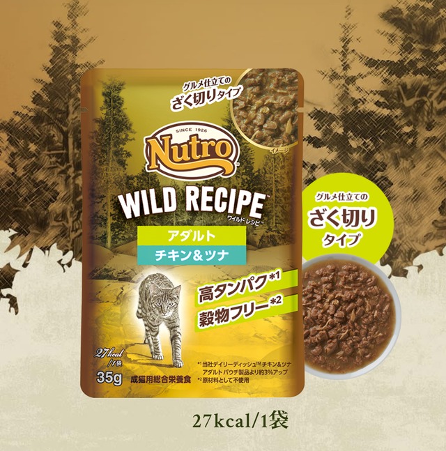 ニュートロ™ ワイルド レシピ™ 成猫用 チキン&ツナ グルメ仕立てのざく切りタイプ パウチ35g