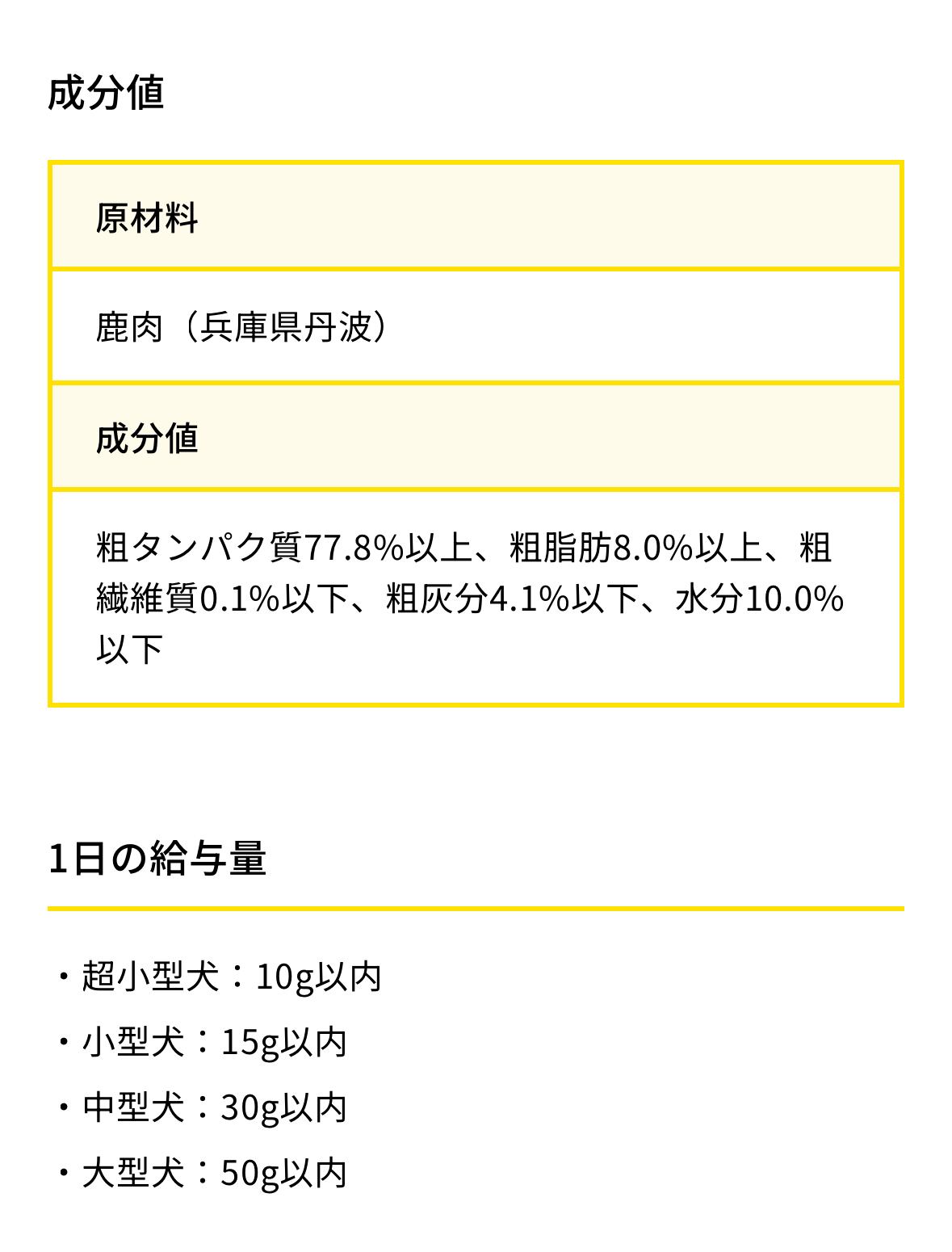 国産天然鹿の肉(ジビエ)を独自製法で乾燥させ、スティック状に仕上げました。