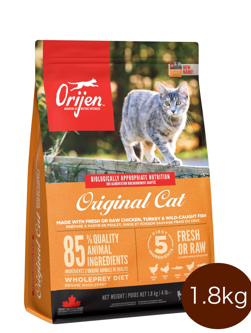 「オリジン オリジナルキャット」は、放し飼いで健康的に育った鶏と七面鳥、天然の魚、平飼い卵などの高品質な動物原材料から作られた栄養価の高いタンパク質を含んだキャットフード。