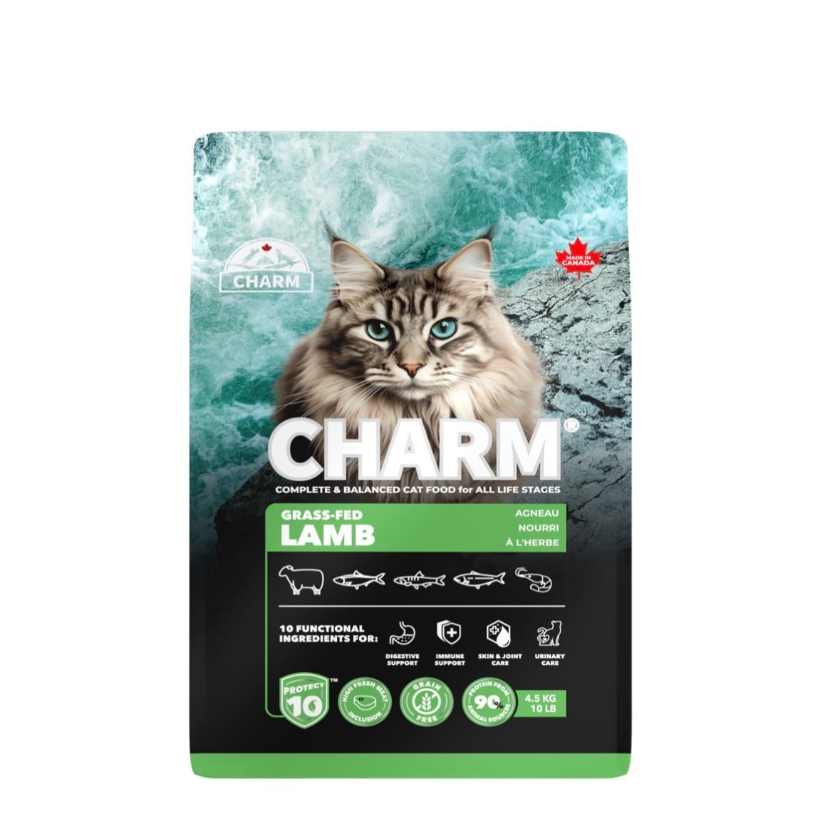「CHARM(チャーム)」のグラスフェッドラム キャットフードは、愛猫の健康を第一に考えた高たんぱく・穀物不使用のプレミアムドライフードです。