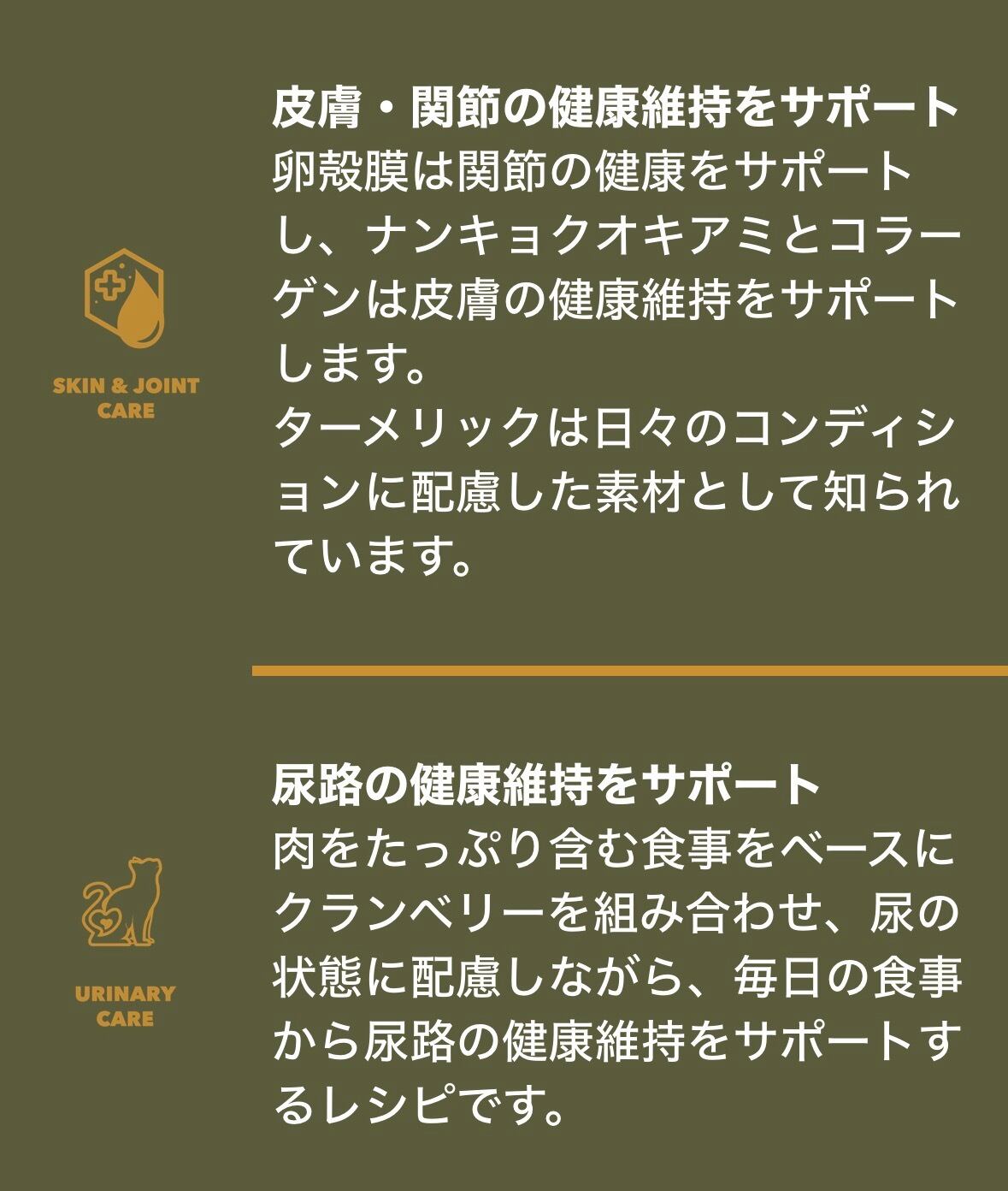 • 消化・免疫・皮膚被毛・尿路ケアに配慮