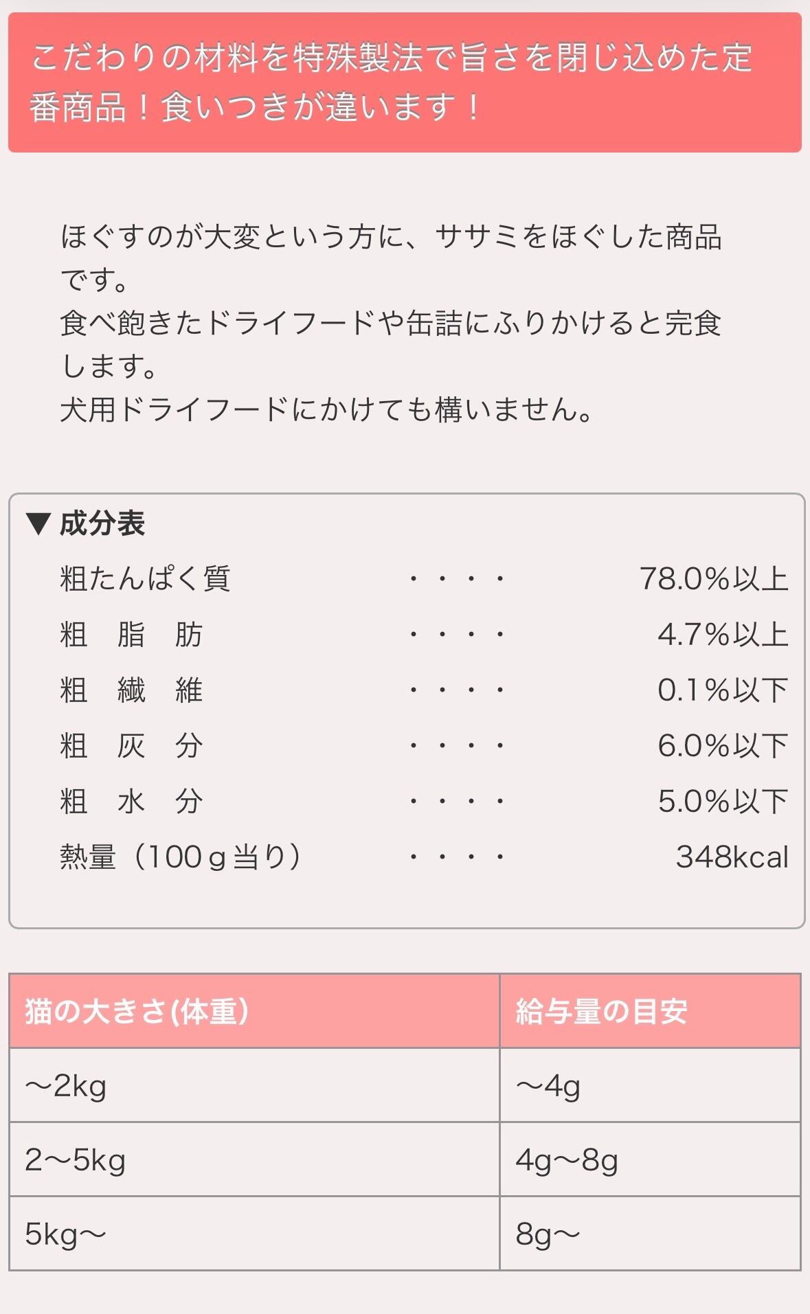 ほぐすのが大変という方に、ササミをほぐした商品です。