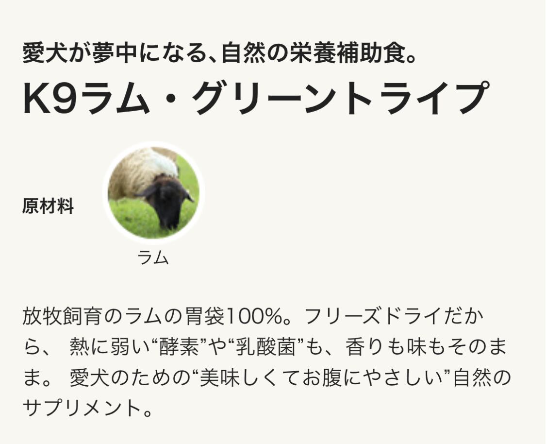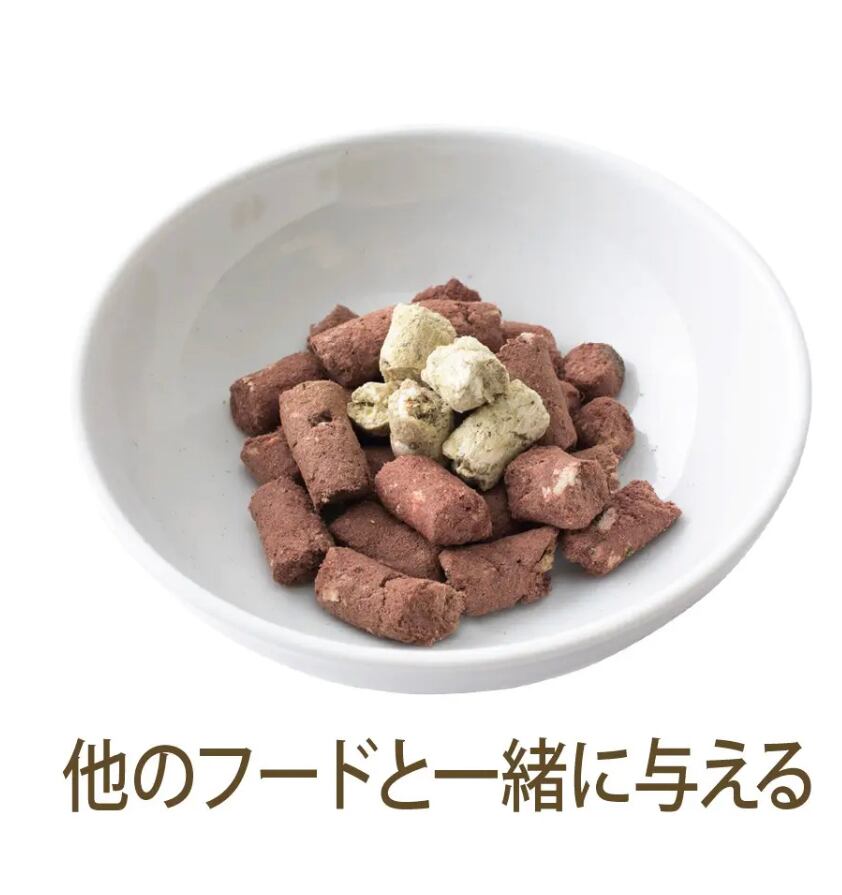 ●非加熱でフリーズドライされた「生のグリーントライプ」には、消化中の草の食物繊維に含まれる「プレバイオティクス」(善玉菌のエサ)と、熱に弱い酵素や乳酸菌