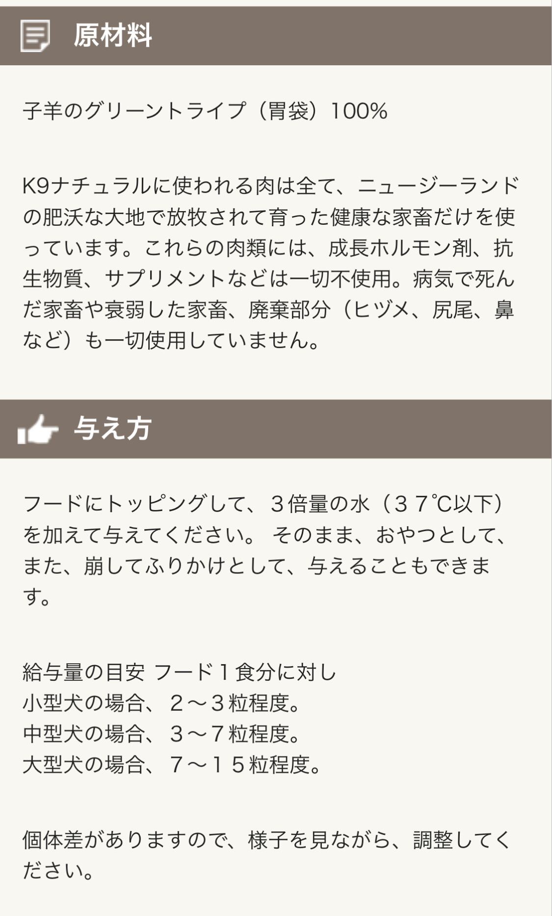 放牧飼育のラムの胃袋100%。フリーズドライだから、 熱に弱い“酵素”や“乳酸菌”も、香りも味もそのまま。 愛猫愛犬のための“美味しくてお腹にやさしい”自然のサプリメント。