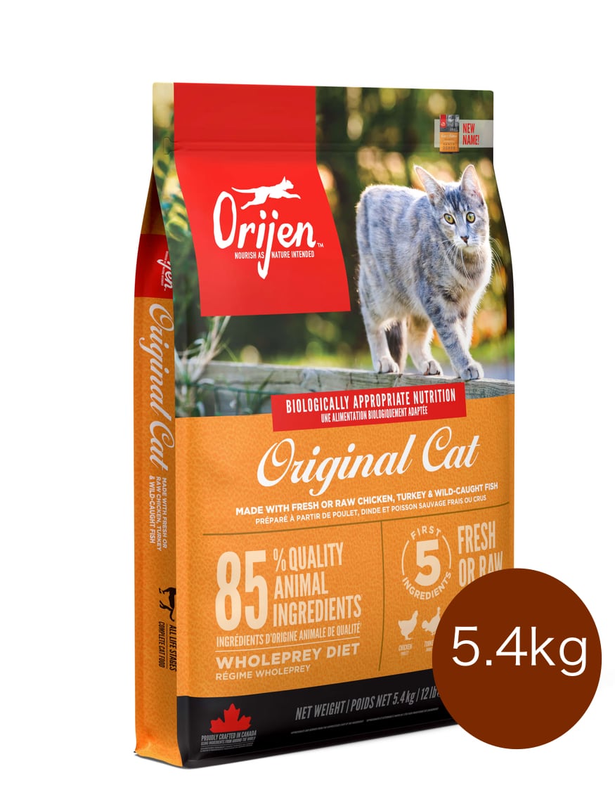 「オリジン オリジナルキャット」は、放し飼いで健康的に育った鶏と七面鳥、天然の魚、平飼い卵などの高品質な動物原材料から作られた栄養価の高いタンパク質を含んだキャットフード。原材料の3分の2は新鮮または生のもので、新鮮な食材をオリジン自社キッチンで丁寧に調理することで、鮮度が良く栄養たっぷりのフードができ上がります。