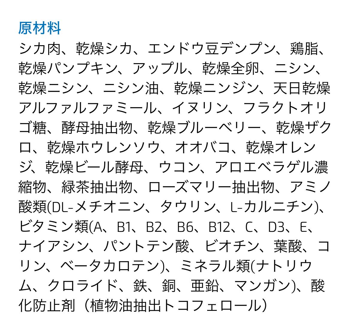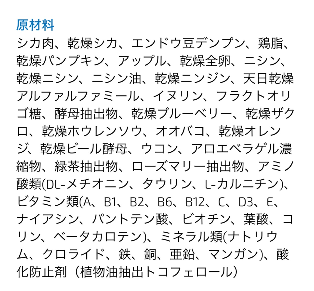 動物性タンパク質は、ベニソン(鹿肉)の正肉部分のみをベースにニシンなどを使用。