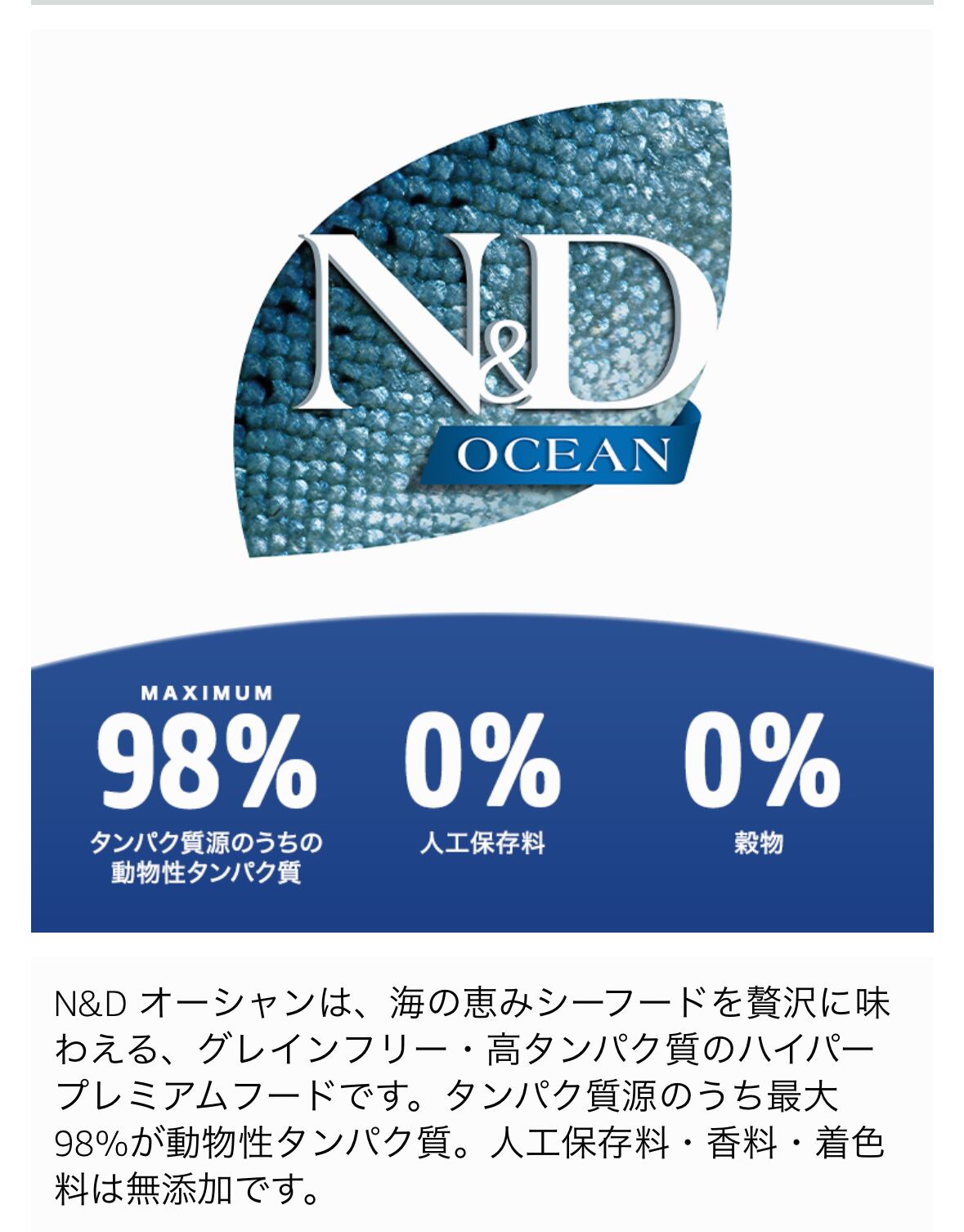 ファルミナ N&D オーシャン ツナ・タラ・エビ・パンプキン ウェット 成猫用は、グレインフリーの総合栄養食。