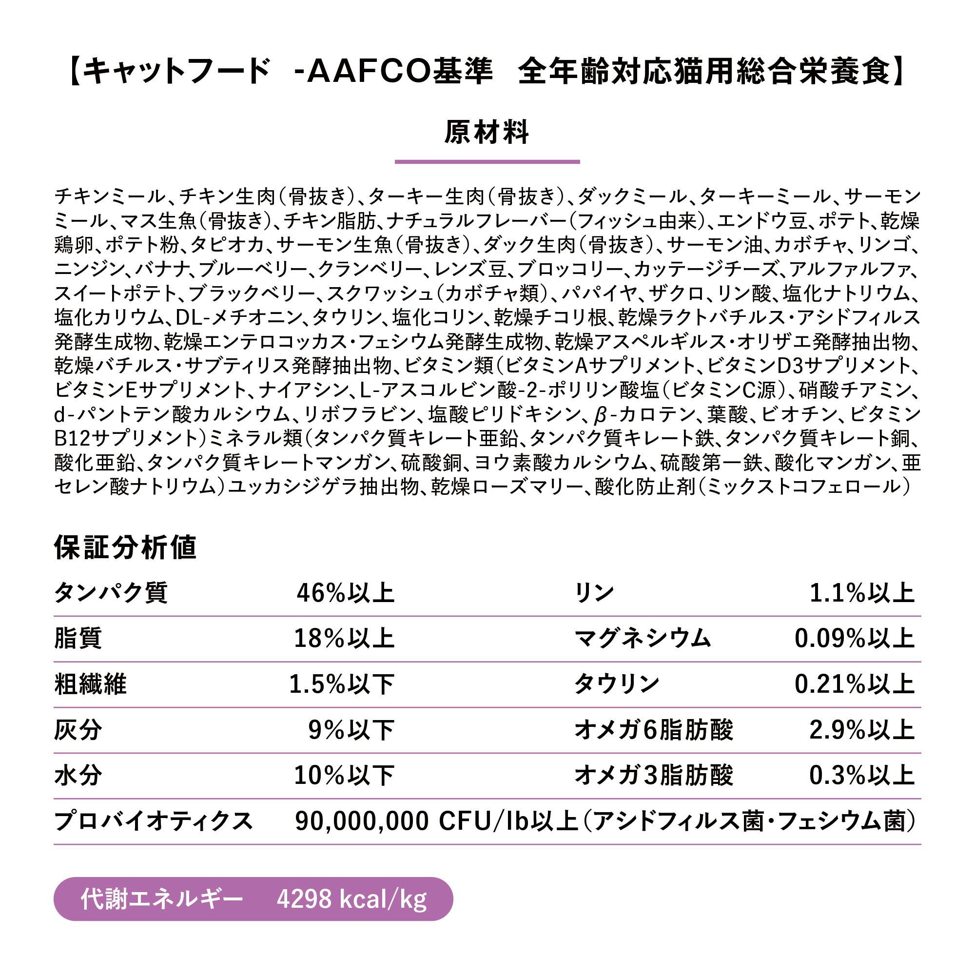 ◆こちらの商品はAAFCOキャットフード栄養素プロフィールズに定められた栄養基準を満たしています。