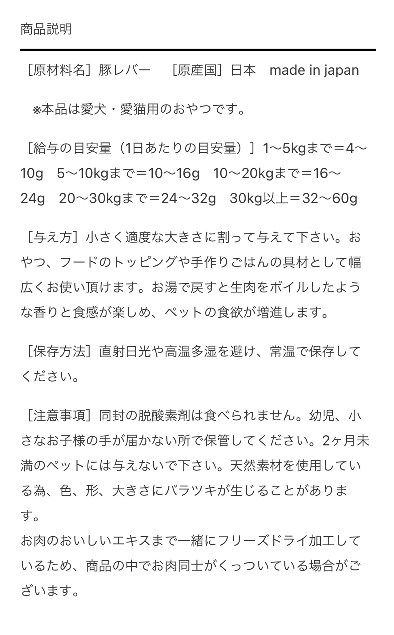 新鮮な豚レバーのみをフリーズドライにしました。
