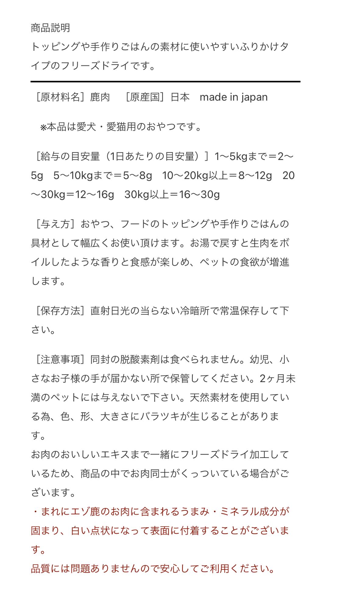 【whitefox】鹿肉のフリーズドライ