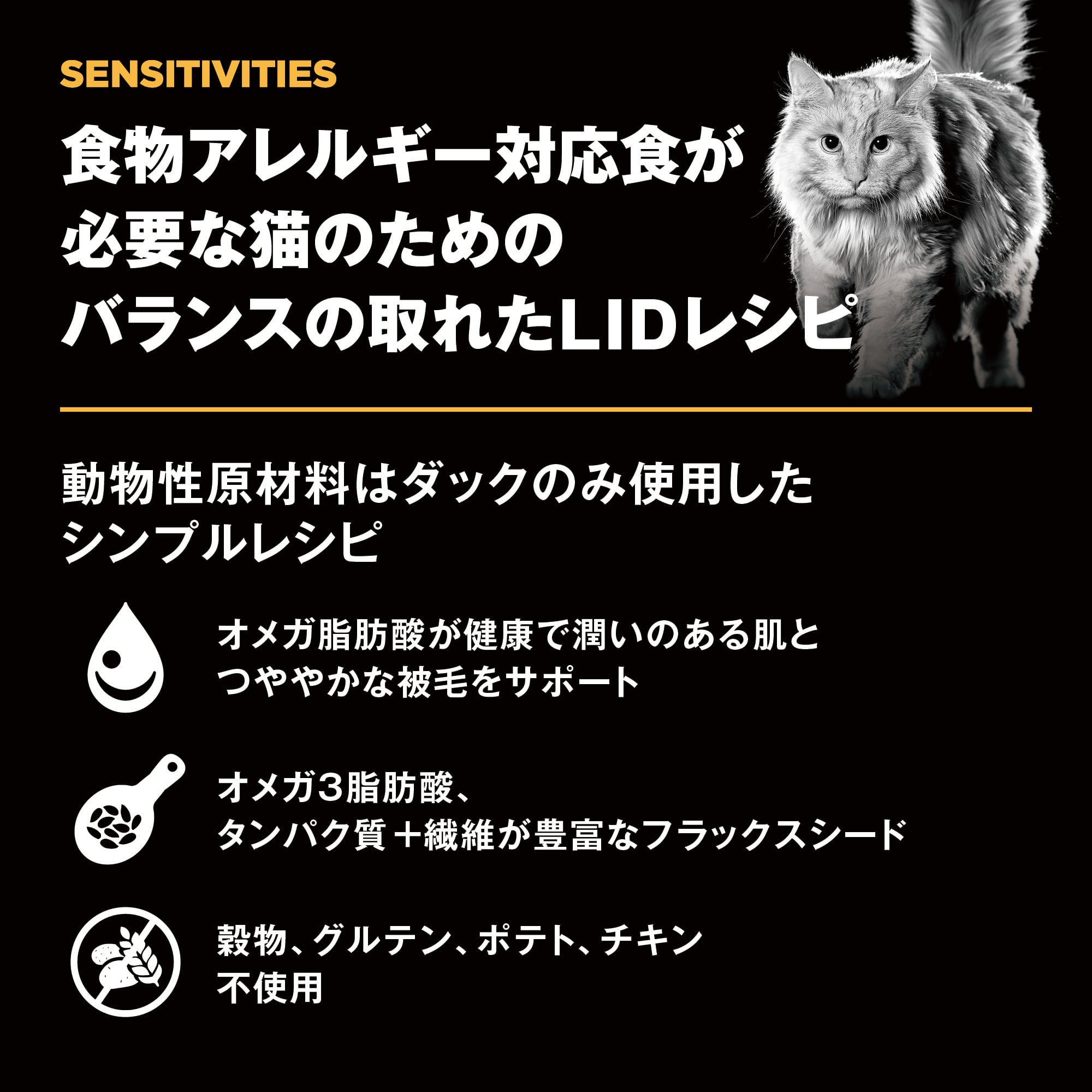 GO! LIDダックキャットは、放し飼いで健康に育った高品質な鴨肉を唯一の動物性タンパク質として使用したアレルギー対応のフードです。