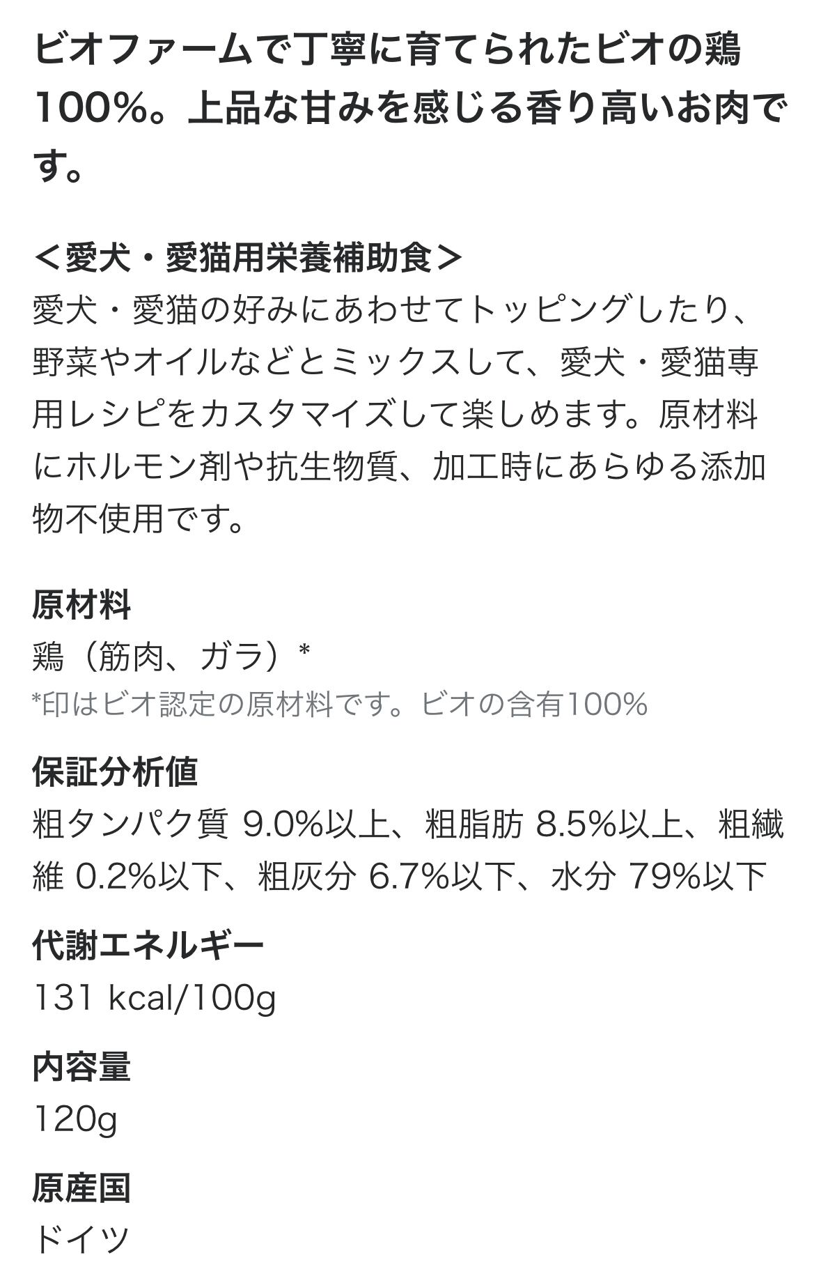 ドイツからやってきたビオの鶏肉100%のレトルトフード《一般食》