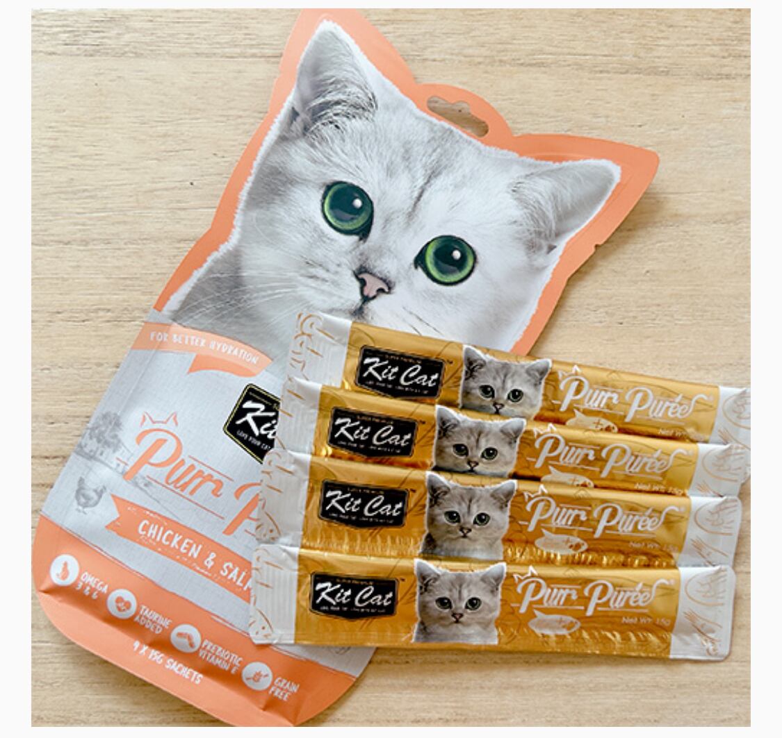 ネコ専用プレミアムブランド、キットキャットのピューレ状、スティックタイプのおやつです。